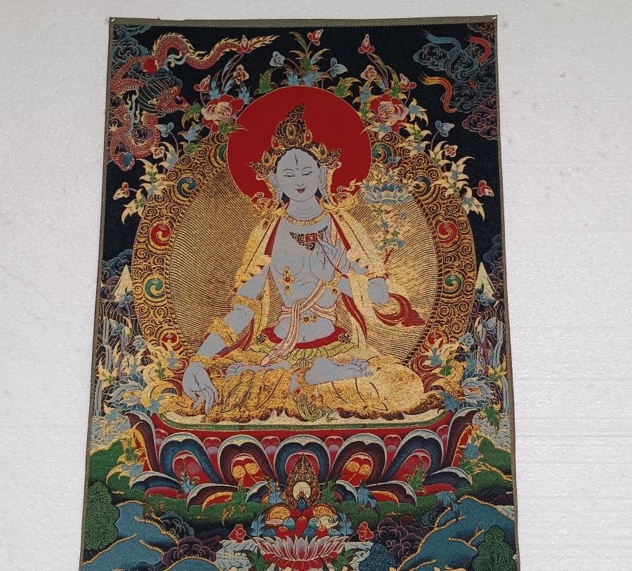 - 白度母観音菩薩 堂仏百仏図 ドンカー 織物 タペストリー 刺繍 織錦画 壁掛け 壁画 仏教 仏教画 仏教美術 仏教芸術 チベット 密教 装飾 zh1