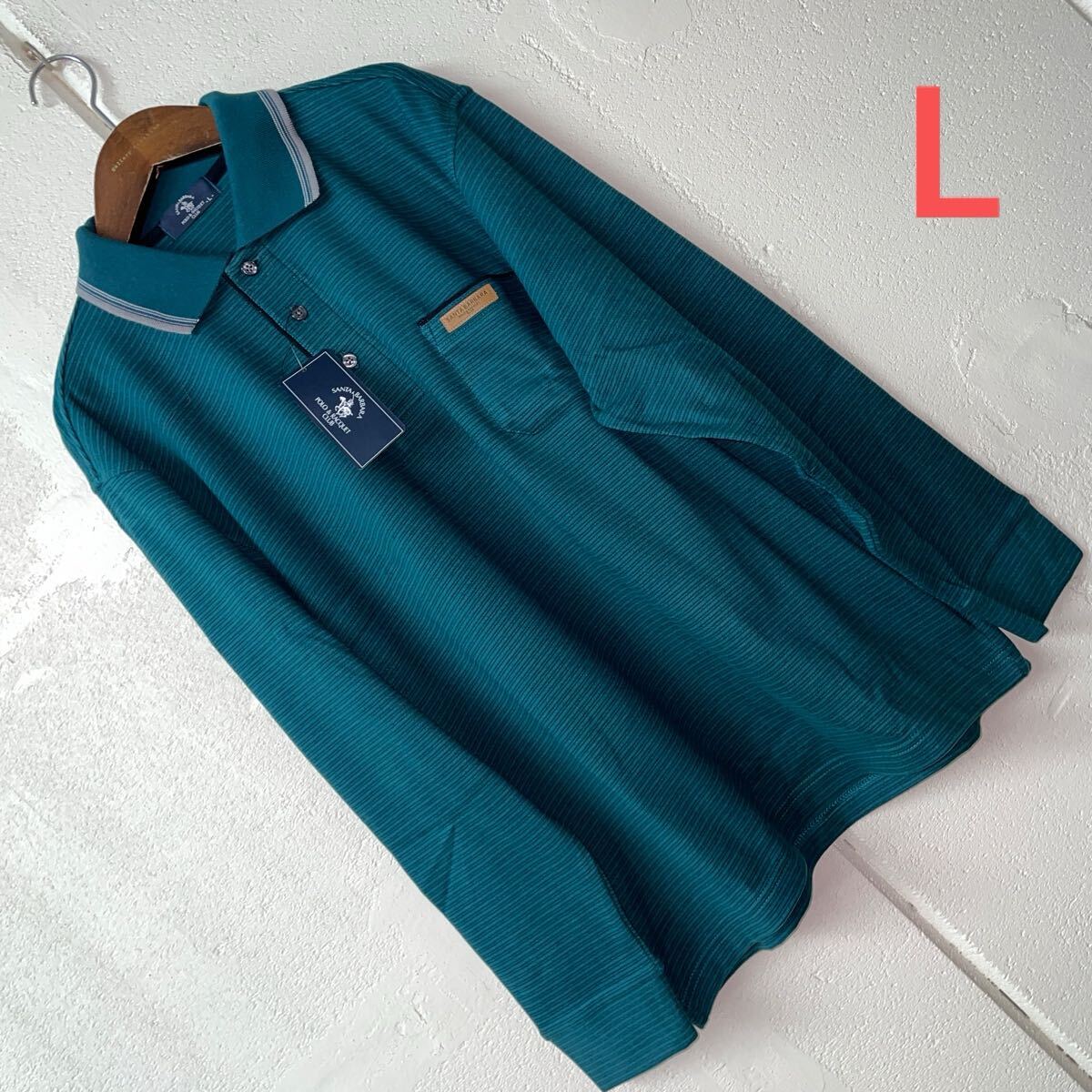 - Lサイズメンズ胸ポケット暖かフリース長袖ポロシャツグリーン