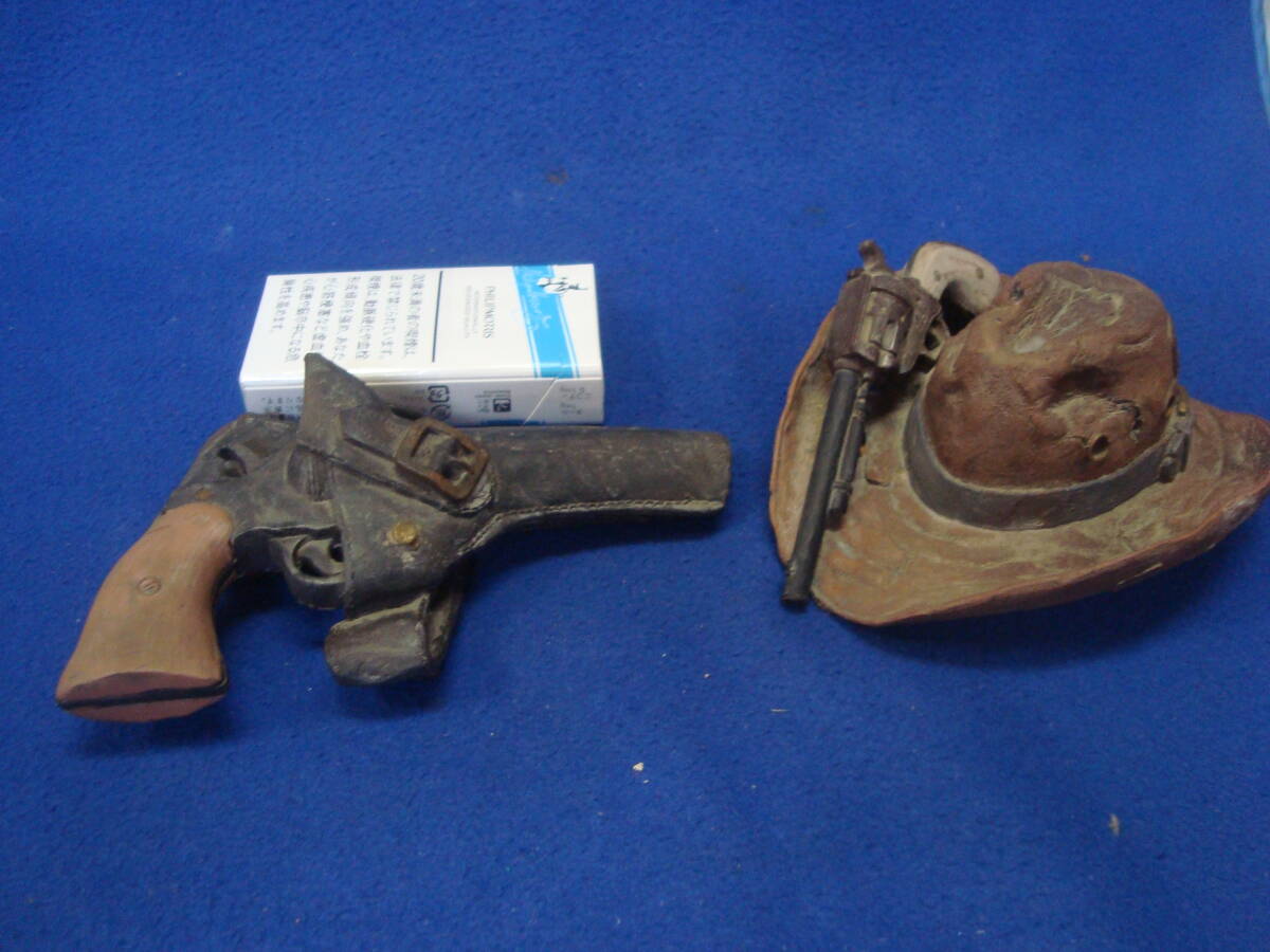 - 「置物 カーボーイハットとコルト拳銃+ガンホルダーと拳銃 2ケ組 700g・300g」