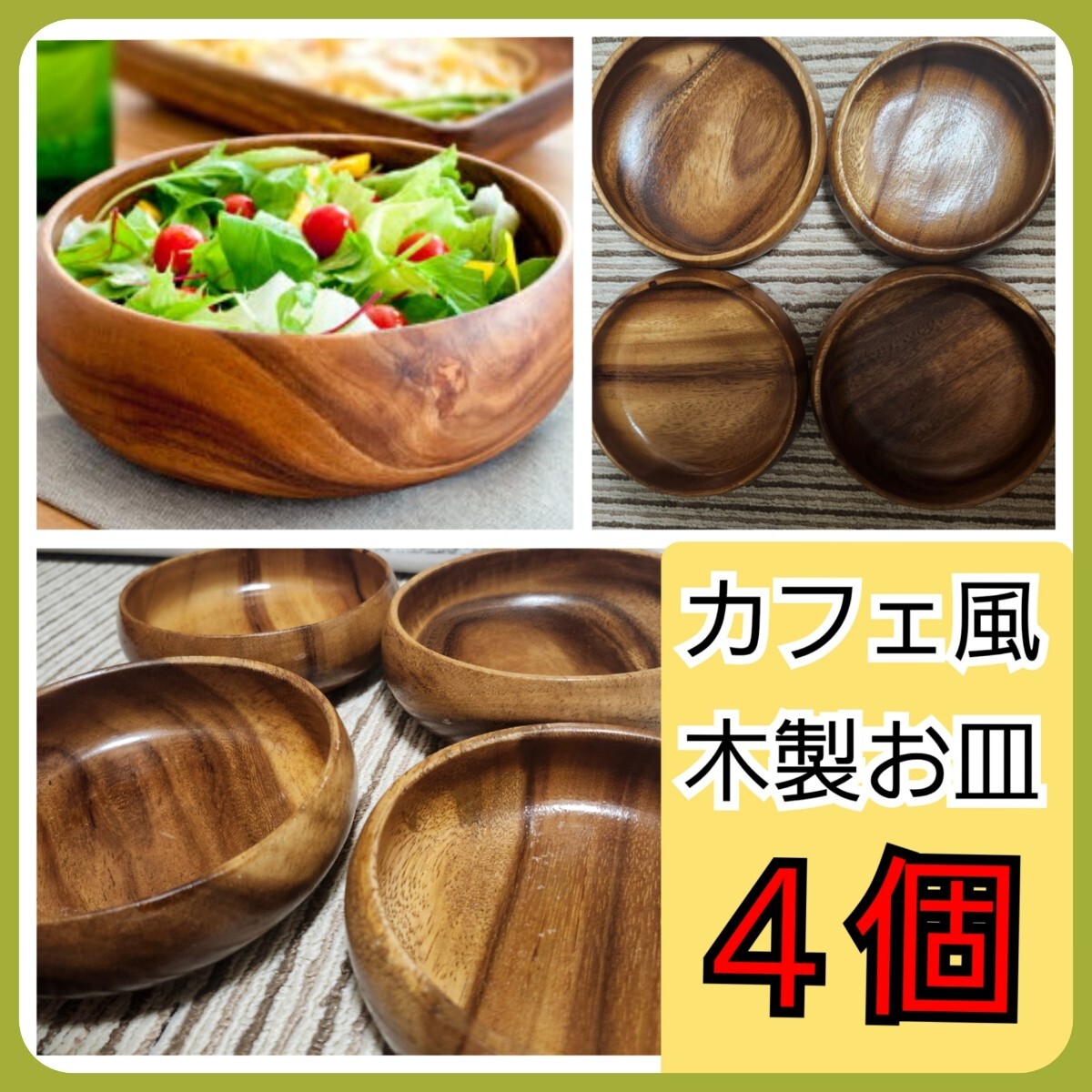 - 4個 まとめて カフェ 雑貨 皿 食器 お椀 マルチボウル アカシア 木目調 ボウル ウッド 木製 木材 トレイ キッチン サラダ