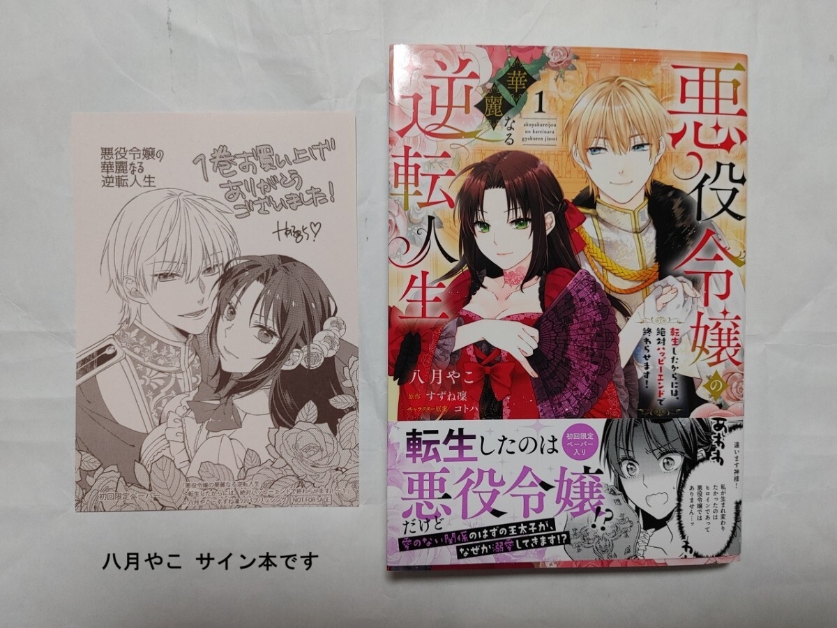 - サイン本 悪役令嬢の華麗なる逆転人生 転生したからには、絶対ハッピーエンドで終わらせます! 1 八月やこ