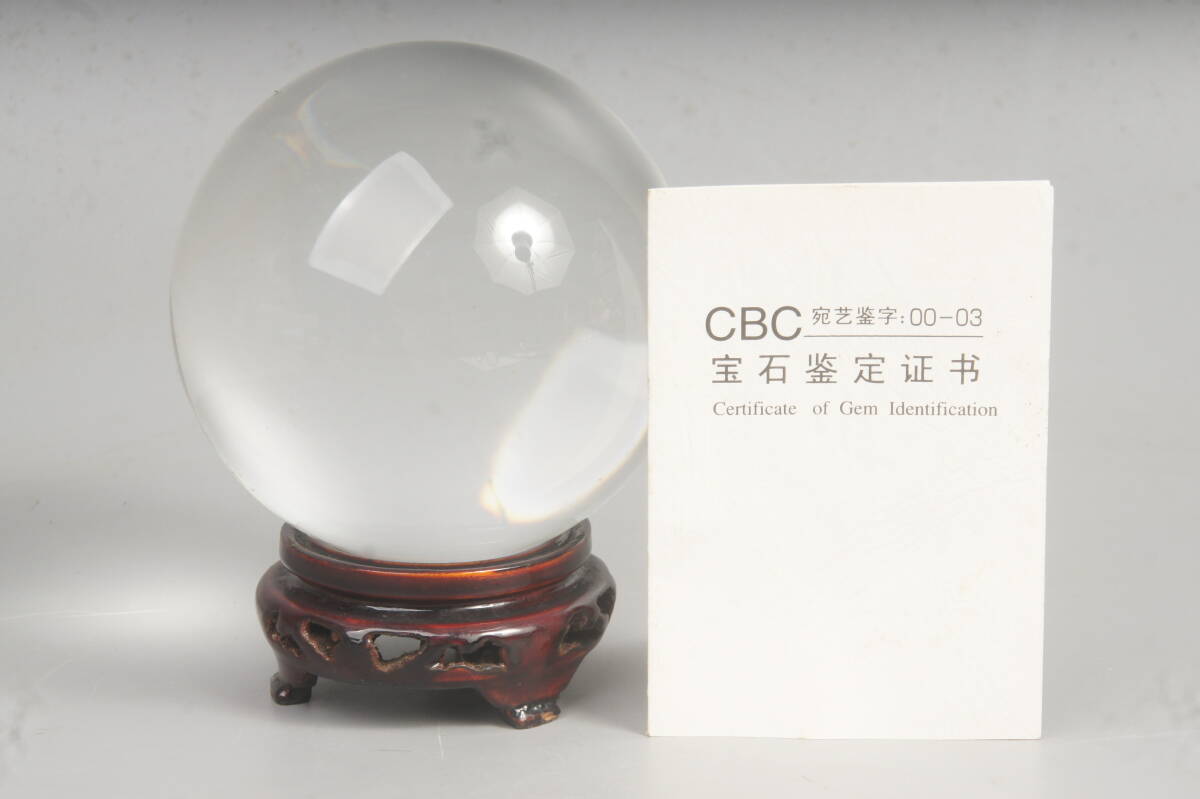 - 直径約11㎝ 中国北京美術工芸 CBC認定書付き 水晶球 木台付き