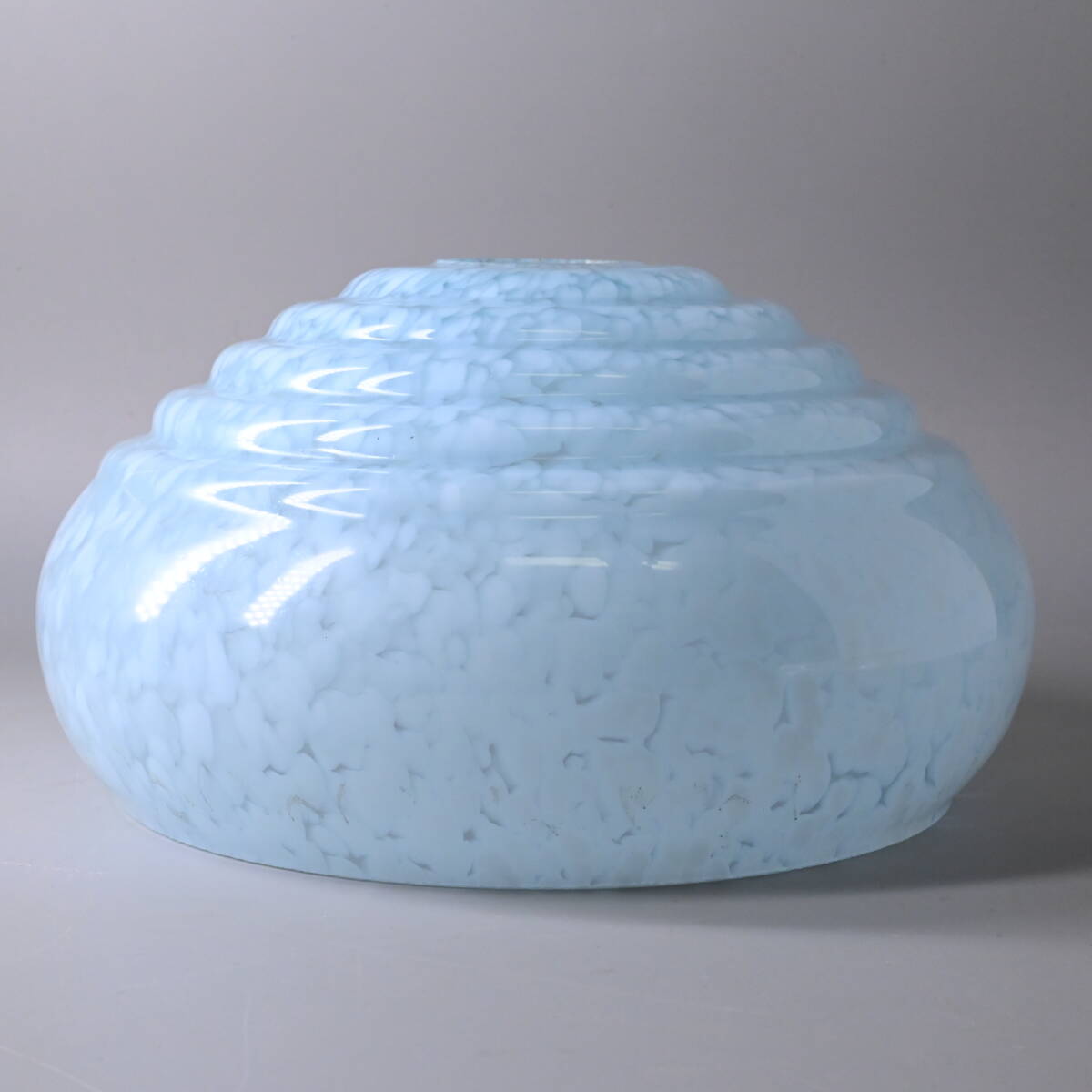 - 11551 電傘 電笠 気泡ガラス 乳白色 水玉 マーブル模様 径17cm 口径3cm 高9cm大正ロマン 昭和レトロ アンティーク 当時物 クリア 透明