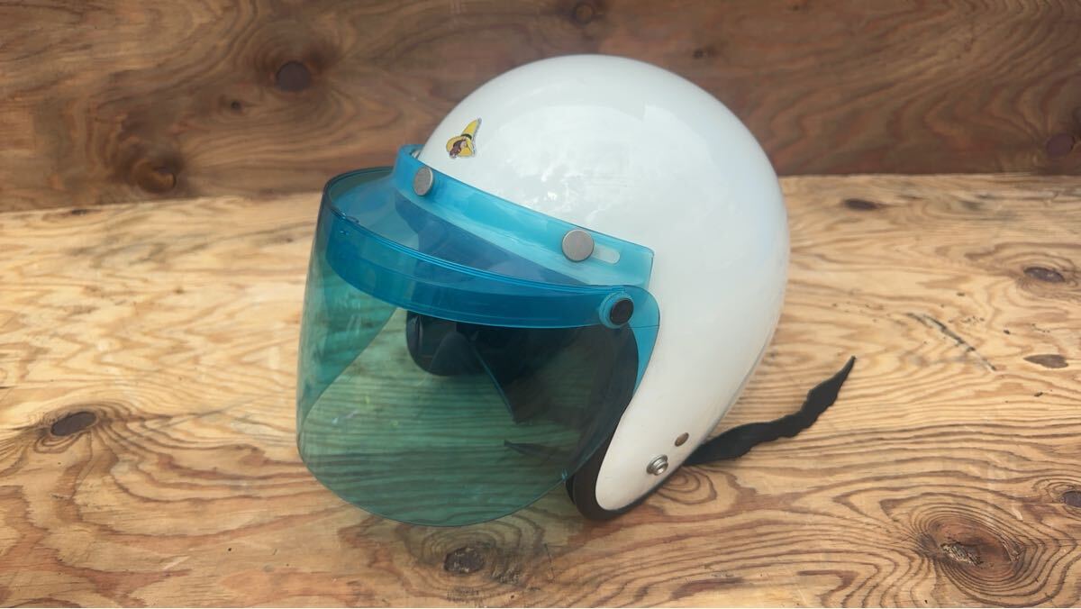 - D578 ジェットヘルメット シールド付き オーシャンブルー バイク フリーサイズ オートバイ レトロ 昭和 旧車 コレクション 売り切り