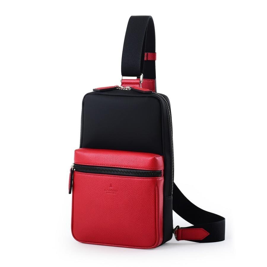 > BB671 ランバン コレクション LANVIN 定価2万7500円 新品 ボディバッグ ワンショルダーバッグ 黒 × 赤 高耐久撥水レザー 284911 エクラ