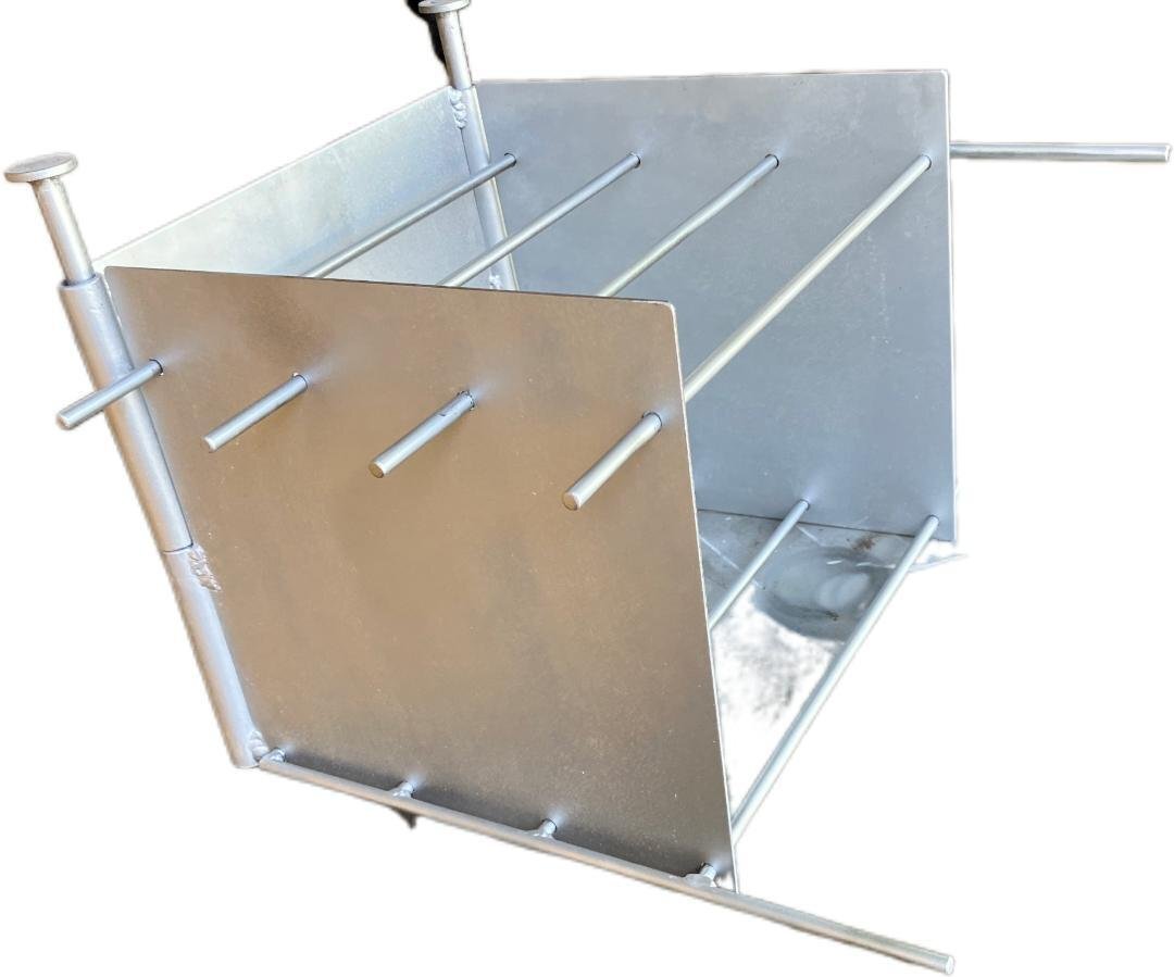 折り畳み式のため、非常にコンパクトに収納できます。 一番奥の縦棒は、地面に打てるように工夫されております。 (