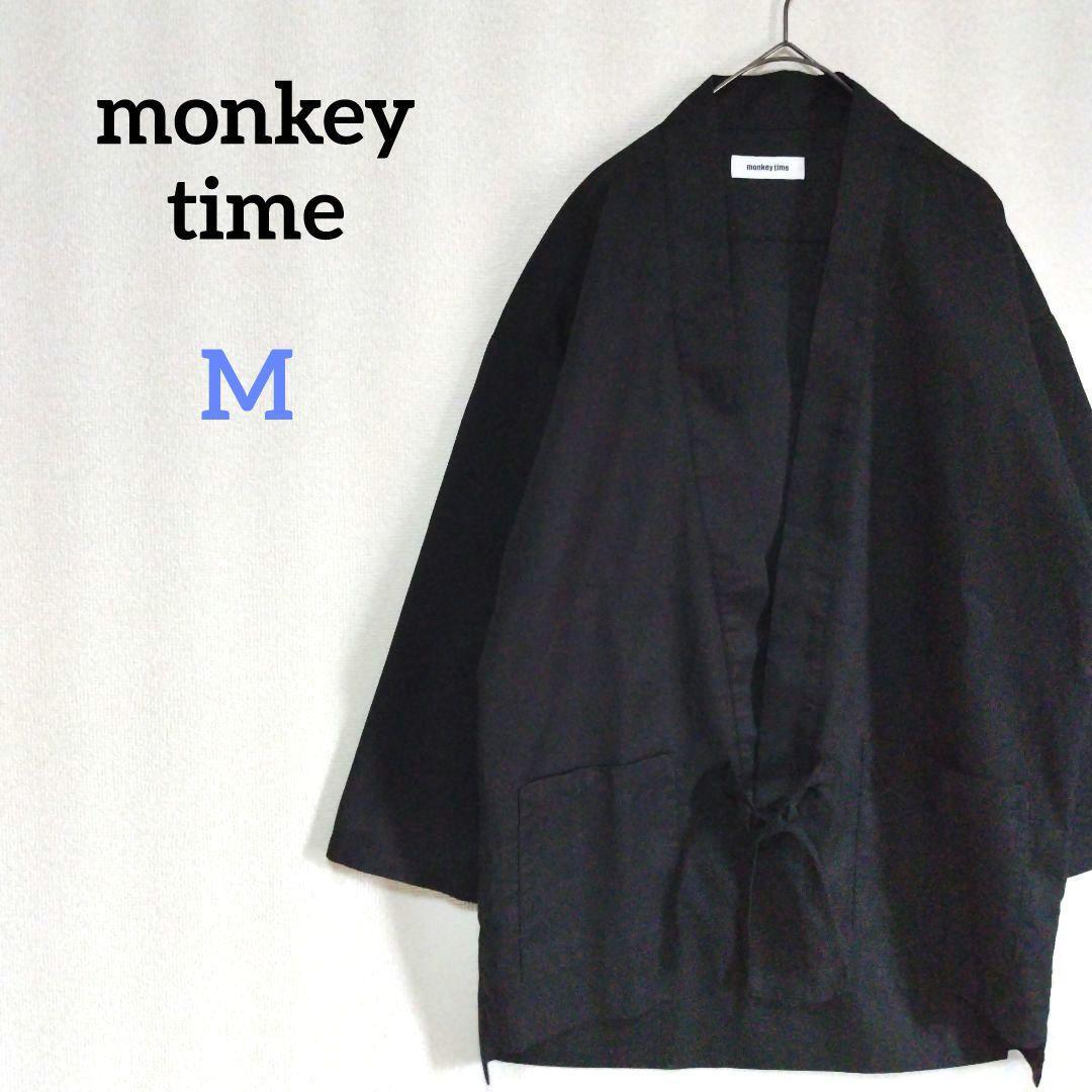 > monkey time モンキータイム ワッフルサムエシャツカーディガン 和服 ジャパニーズテイスト 作務衣 ブラック 黒 ユニセックス 男女兼用