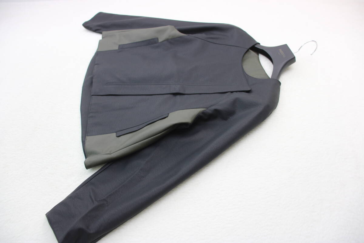 - 4546 新品 配色切替フェイクレザージャケット ブラックFサイズ
