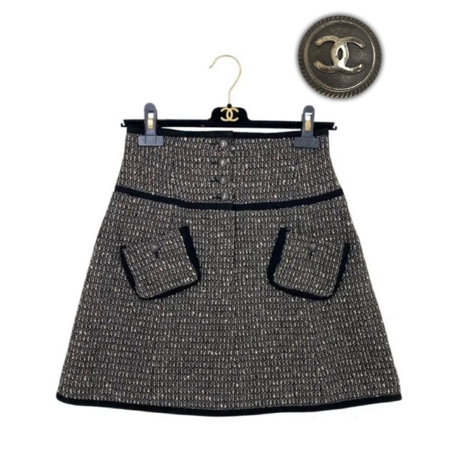 > シャネル CHANEL ツイードスカート ココマークボタン 正規品 レア ビッグポケット付き 03A 38サイズ