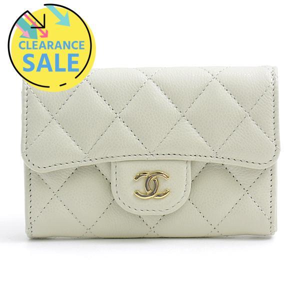 > シャネル コインケース レディース マトラッセ クラシックフラップ カードケース キャビアスキン ライトグレー CHANEL 中古