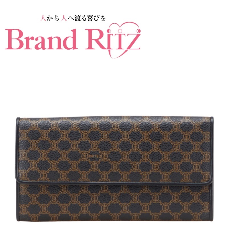 > 中古 セリーヌ マカダム 長財布 ブラック ABランク ブラウン PVC レザー レディース メンズ CELINE 【西神店】