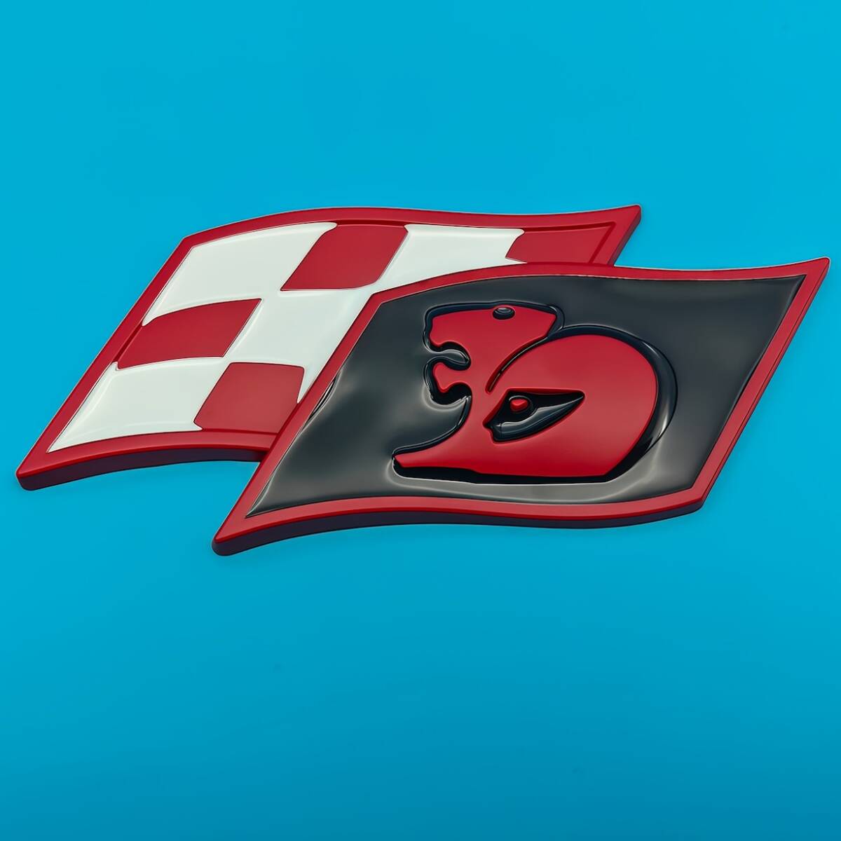 - 金属 HSV エンブレム フラッグ 11.5cm ブラック 赤 白 ライオン 車用 ステッカー メタル 貼り付け シール 3D 立体 おしゃれ バイク t8629