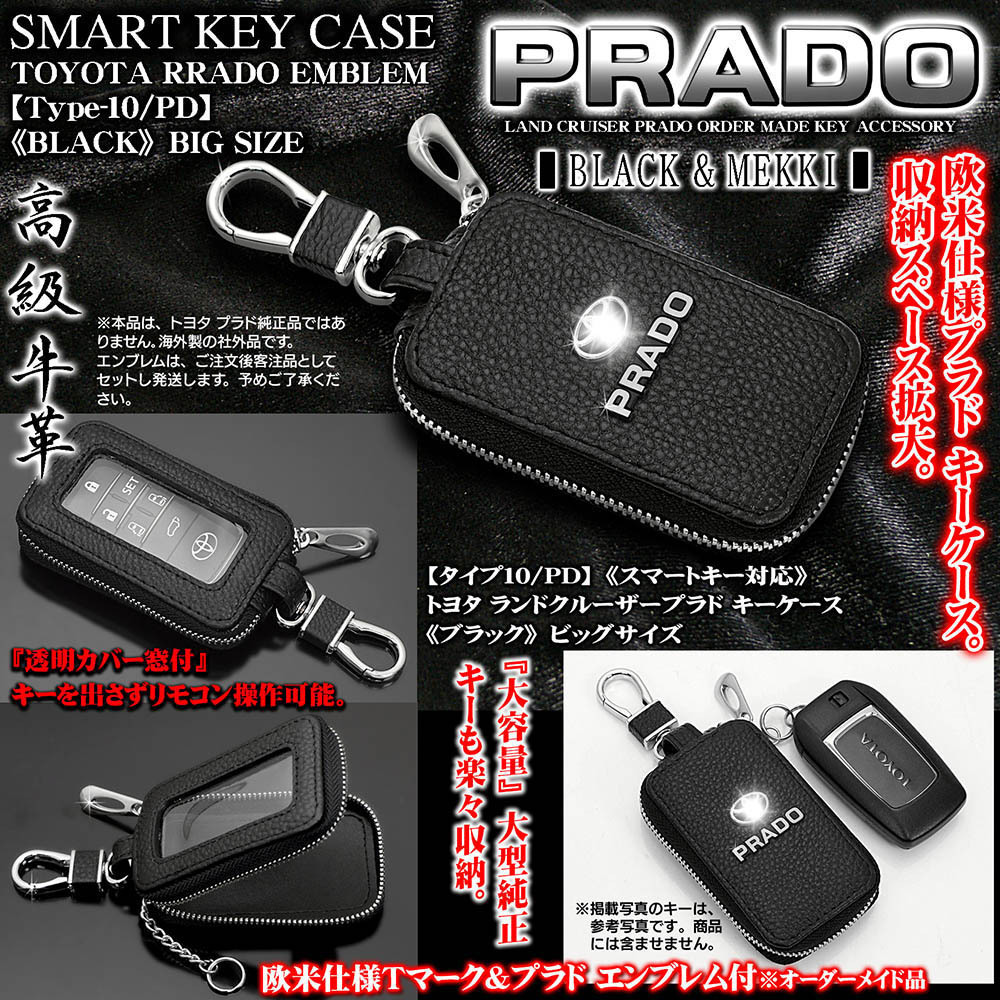 - ブラガ/トヨタ ランクルプラド キーケース/ビッグLサイズ/ブラック/Tマーク&PRADOエンブレム/タイプ10/PD/窓,フック付/スマートキー/牛革製