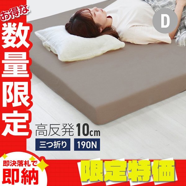 - 【限定セール】高反発マットレス ダブル 極厚10cm 190N 三つ折り マットレス 高反発ウレタン ごろ寝マット 敷き布団 洗えるカバー 腰痛