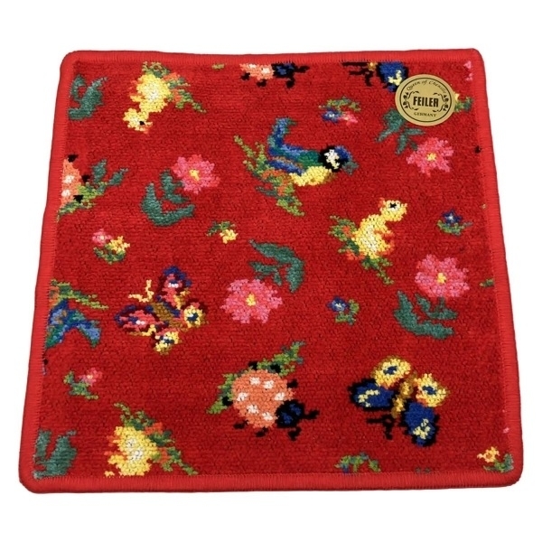 > フェイラー FEILER - コットン レッド×イエロー×マルチ ハンドタオル/ハイジ/鳥/フラワー(花)/タオルハンカチ 新品同様 小物