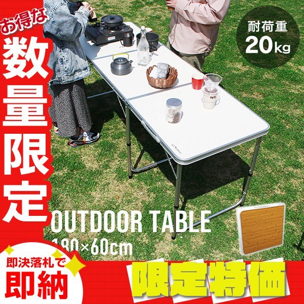 > 【限定セール】折りたたみアウトドアテーブル アルミテーブル 180×60cm 高さ3段階 コンパクト 軽量 レジャー キャンプ BBQ mermont 黄