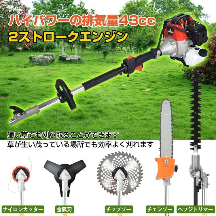 - 訳あり送料無料 正規品 草刈機 エンジン ナイロンカッター エンジン草刈機 チェーンソー 高枝切り ヘッジトリマー 43cc 1台4役 sg068-wj