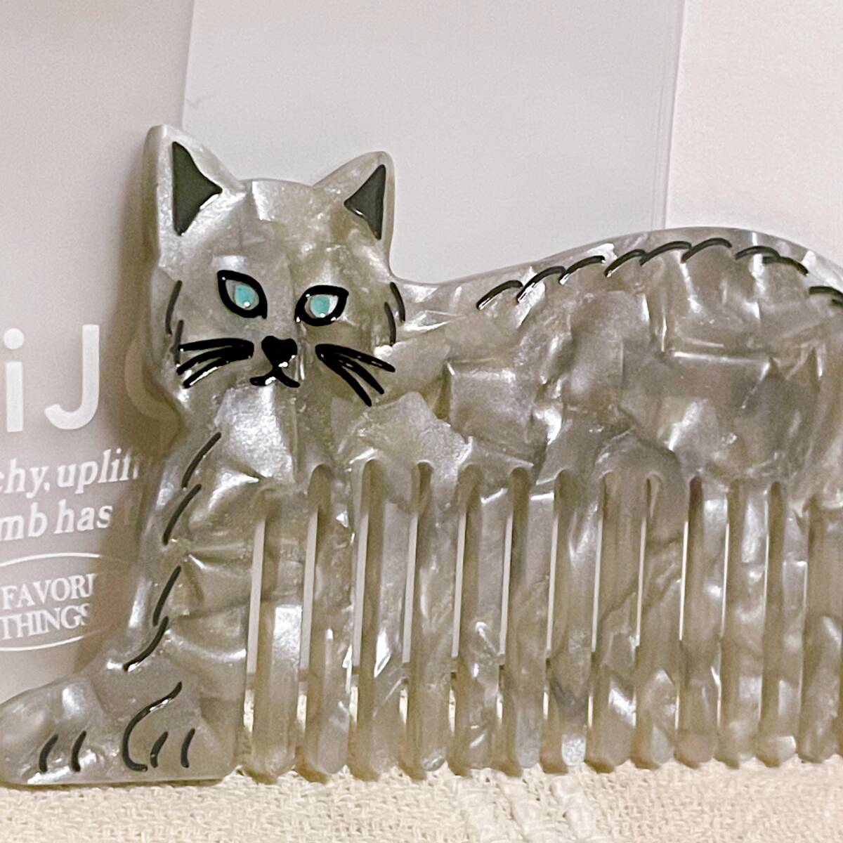 - 新品!未使用!猫コーム JoliJoli ダイカットコーム キャット ネコ グレー 櫛 ブラシ ケース付き アクリル ヴィンテージ ルーサイト レトロ