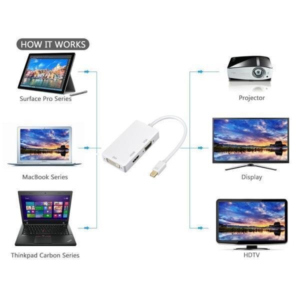 > Mini DisplayPort/Thunderbolt to HDMI/DVI/VGA 3in1 変換アダプターケーブル MINI2DVI【ホワイト】