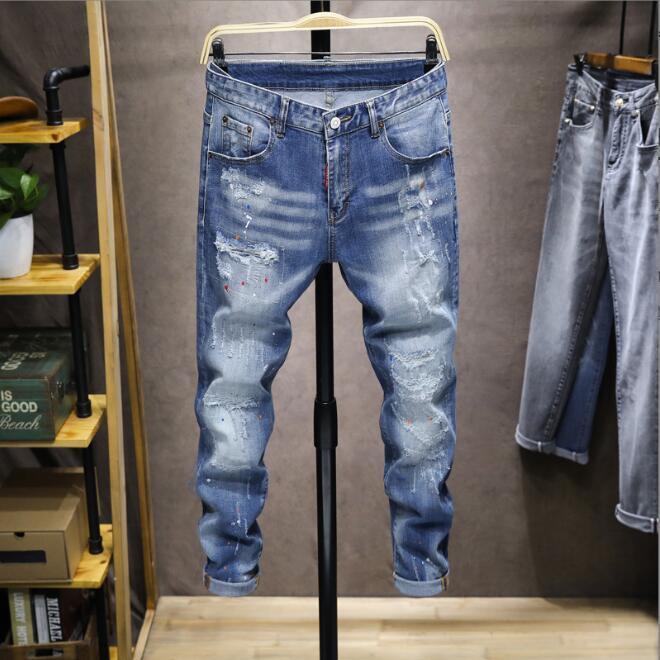 - 新入荷ジーンズ ジーパン スキニーパンツ メンズ*新品 デニムパンツ バイクジーンズ ダメージ加工 ボトムスブルー W34