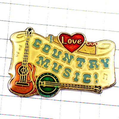 > ピンバッジ・バンジョー楽器ギターLOVEカントリー音楽アコースティックギター◆フランス限定ピンズ◆レアなヴィンテージものピンバッチ