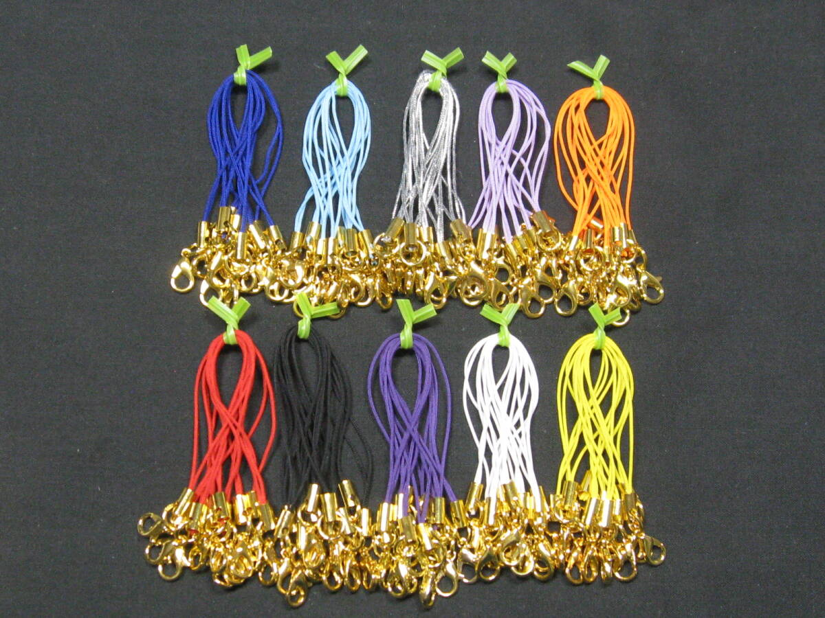 - カニカン付 ストラップ 紐 ヒモ 10色×10本 合計100本セット