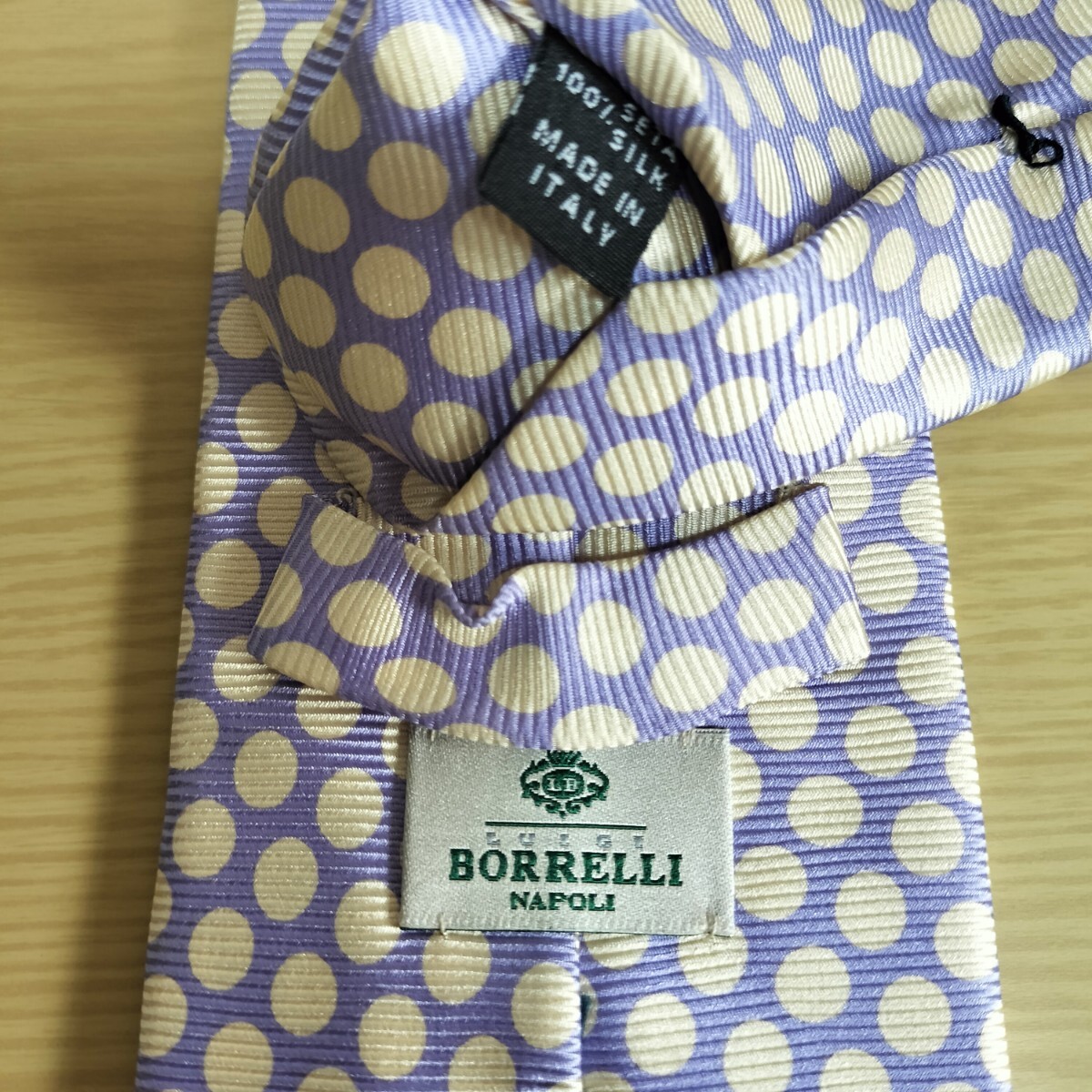 - LUIGI BORRELLI(ルイジボレッリ)ラベンダーベージュ丸模様ネクタイ