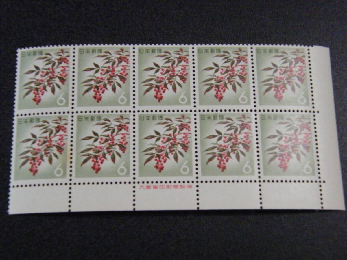 - ナンテン 6円 銘版「大蔵省印刷局」 シミあり 10枚ブロック 未使用 第3次動植物国宝