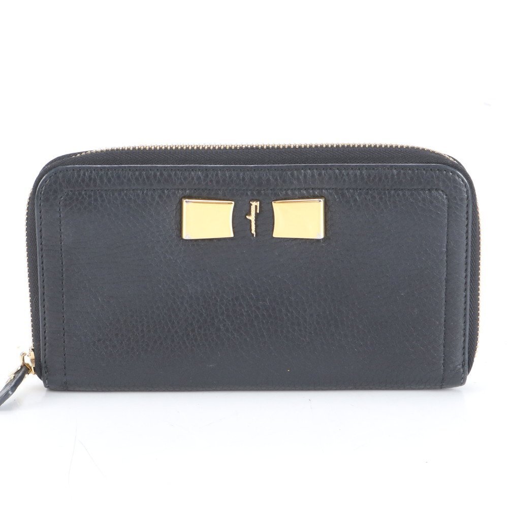 - 1円■美品■サルヴァトーレフェラガモ■リボン レザー 長財布 ロング ウォレット ラウンドファスナー ブラック 黒 レディース RUE CQ1-2