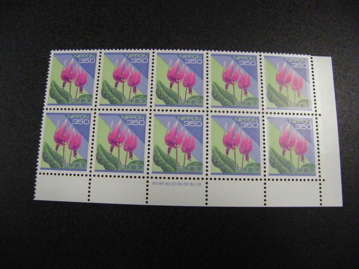 - カタクリ 350円 銘版「財務省印刷局」10枚ブロック 未使用 1994年シリーズ(CM付)