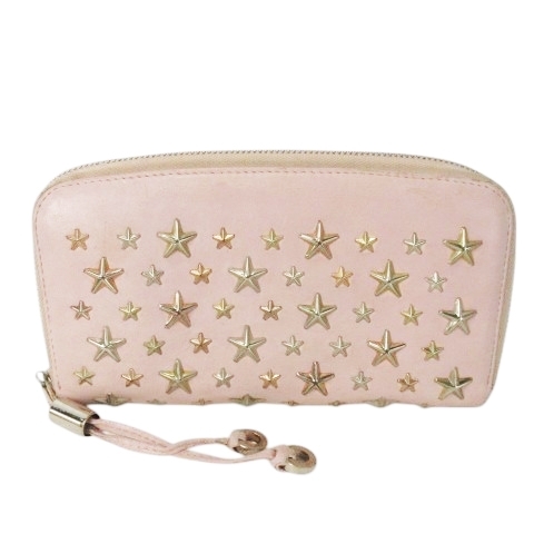 > ジミーチュウ JIMMY CHOO 長財布 ロングウォレット 小銭入れあり ラウンドファスナー スタッズ 星 スター ピンク /CK32