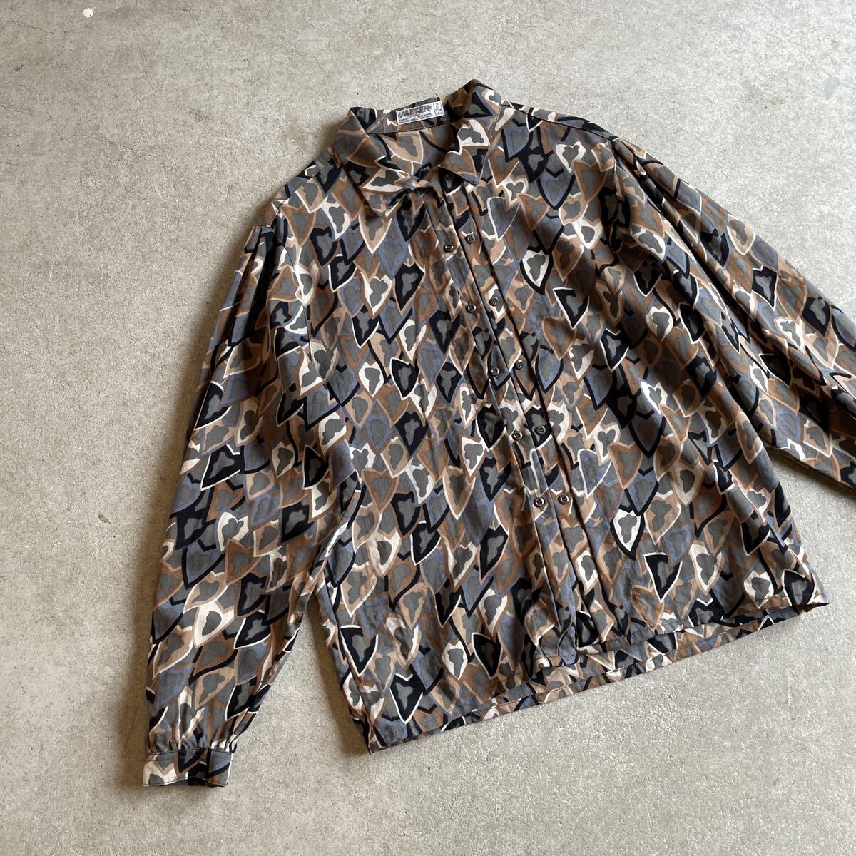 - ビンテージ イギリス製 ウール デザインボタン 総柄シャツ 5ヴィンテージ ブラウス アート レディース ブラウン 茶色 ヨーロッパ古着