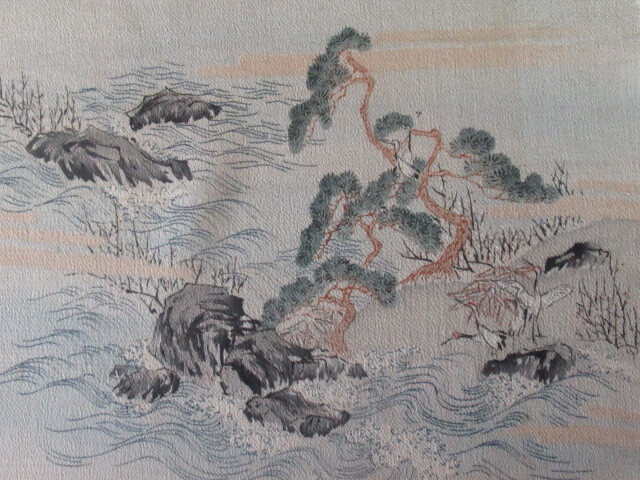 - ●古裂●ちりめん●『山水舞鶴之図』●1m24cm×34cm●解き物●一幅●ゆうパケット¥310-●