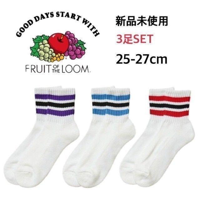- 新品 フルーツオブザルーム ショート ラインソックス C柄 3足 25-27cm