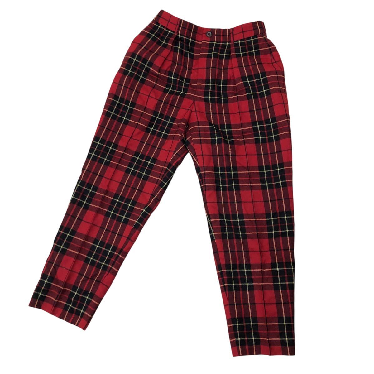 - 9NK003-68 MACKINTOSH PHILOSOPHY マッキントッシュフィロソフィー ウエストゴム タック パンツ ボトムス チェック 赤 レディース 女性用 S