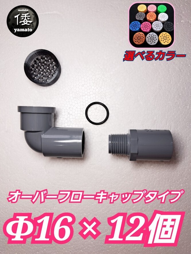 > 【倭めだか】 呼び径φ16×12個 3D キャップ オーバーフロー 装置 塩ビ 溢水 雨対策 NVボックス 水槽 プランター 飼育容器 タライ 集中ろ過