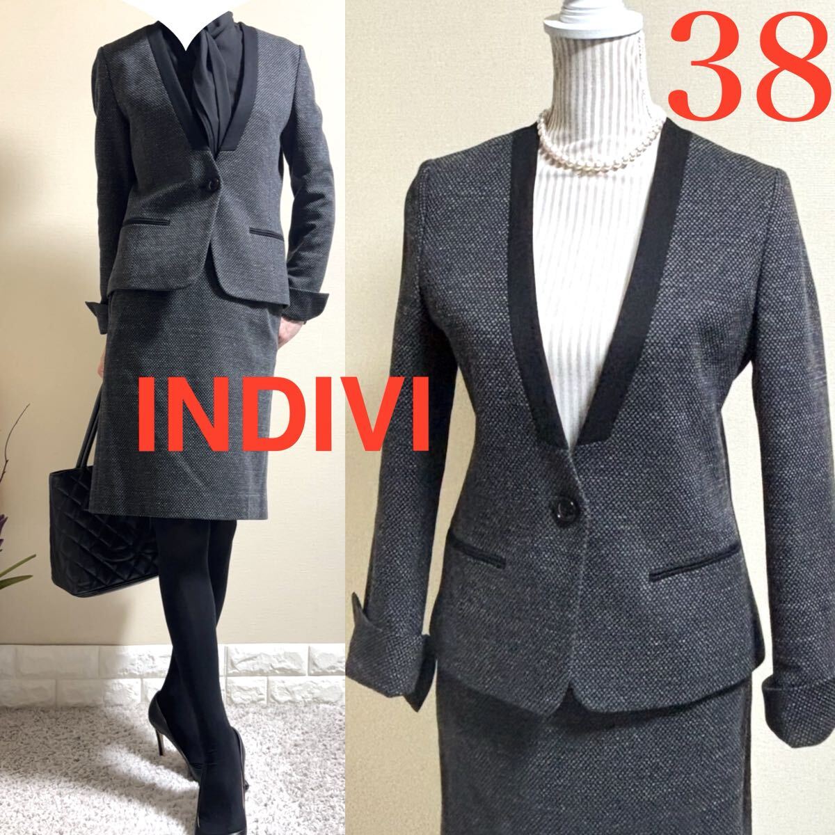 - インディヴィ INDIVI 配色 ツイード セットアップ スーツ スタイル美人スーツ M 38 グレー 黒 七五三 入学式 卒業式 通勤