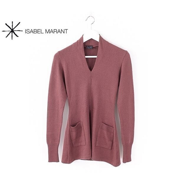 - A3409/美品 春夏 isabel marant イザベルマラン ウール ノーカラー スリム ニット セーター XS程 紫/フランス製 レディース カーディガン
