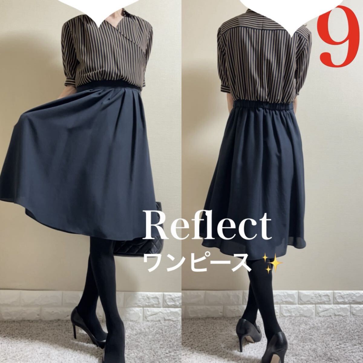 - 美品!Reflect リフレクト 洗える!濃紺 ストライプ 脚長 ハイウエスト切替 フィットアンドフレア ワンピース M 9 上質 通年