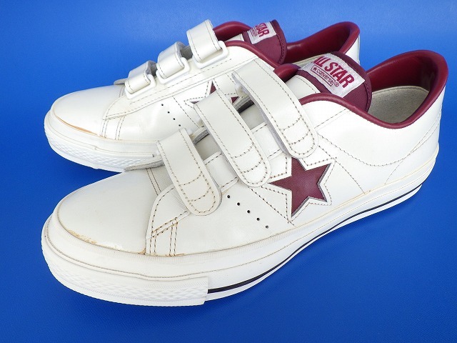 - 15677■美品 日本製 CONVERSE ONESTAR V-3 コンバース ワンスター ベルクロ 白 エンジ 赤茶 US 71/2 26 MADE IN JAPAN