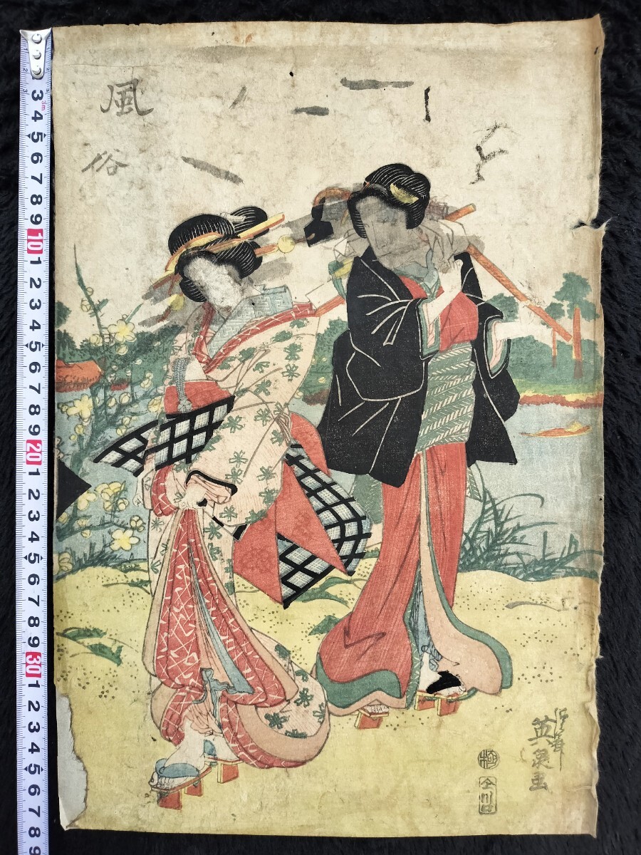 - 江戸期/真作 渓斎英泉「風俗」本物浮世絵木版画 美人画 錦絵 大判 裏打ち