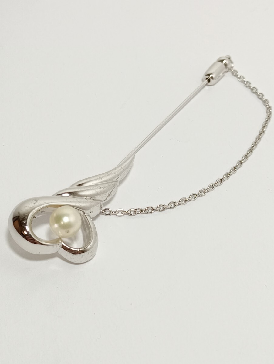 - 1円【良品】TASAKI 田崎真珠 ブローチ S刻印 ハートモチーフ 6.8mm パール ピンブローチ 真珠
