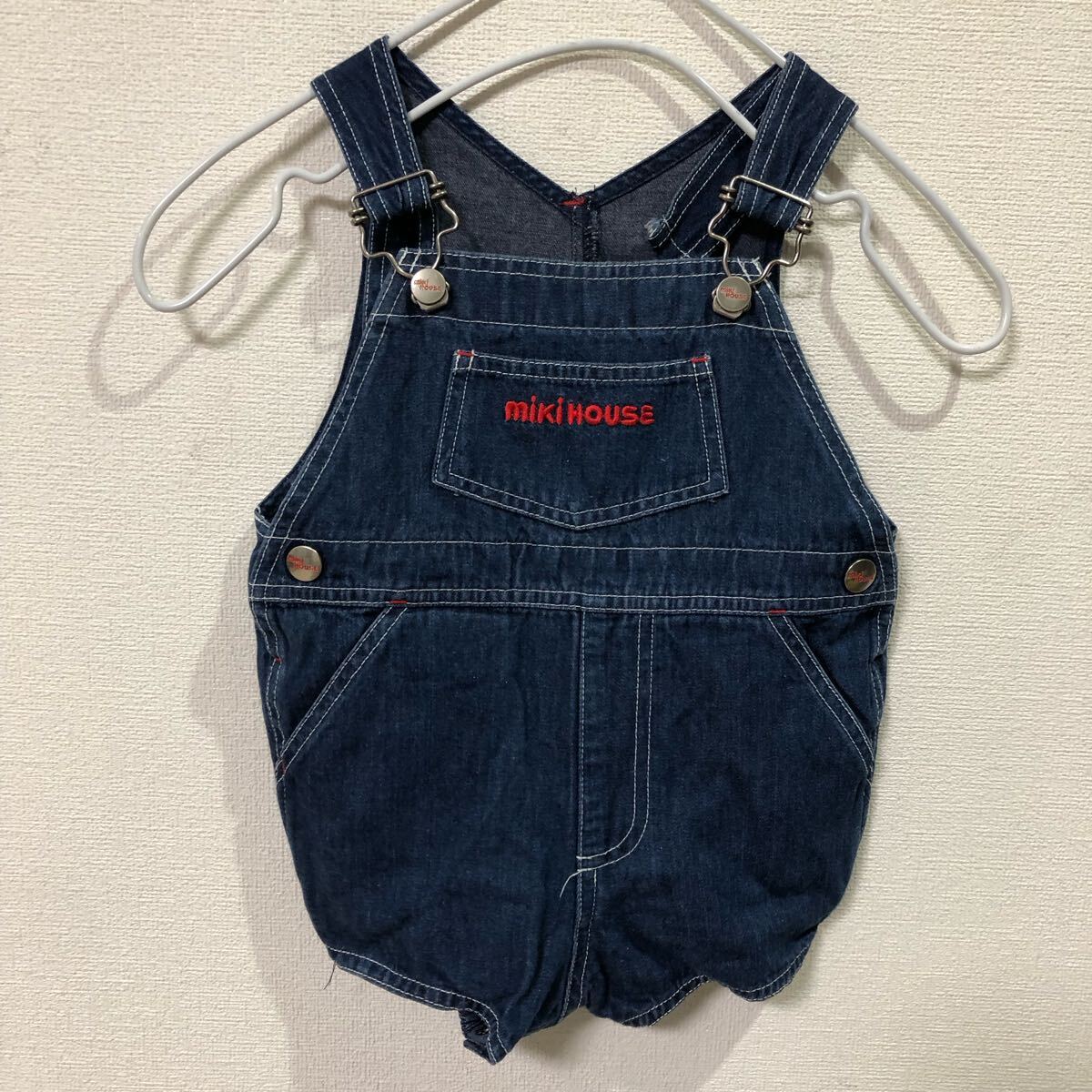 - ミキハウス mikiHOUSE 子供服 オーバーオール デニム 80サイズ 刺繍 レトロ 日本製 12 T80 G11