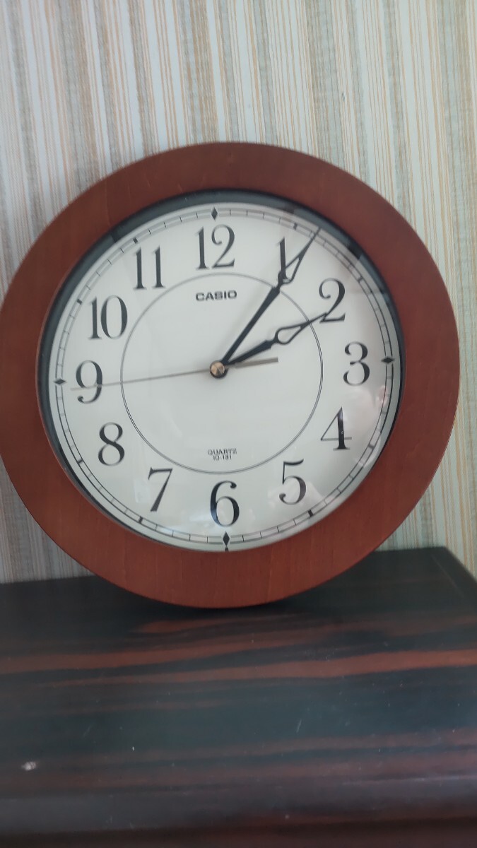 - 309 CASIO IQ-131 壁掛け時計 クォーツ式 木製 動作確認済 箱なし