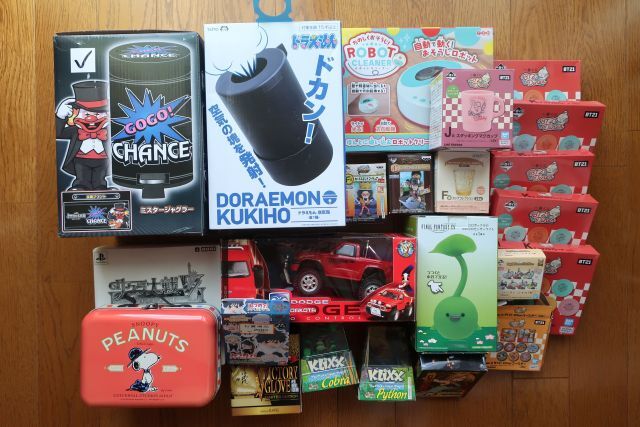 - ドラえもん 空気砲、JUGGLER DUST BOX8 BLACK、Final Fantasy センサーライト、SoftBank Victory Globe、ラジコン DODGE他