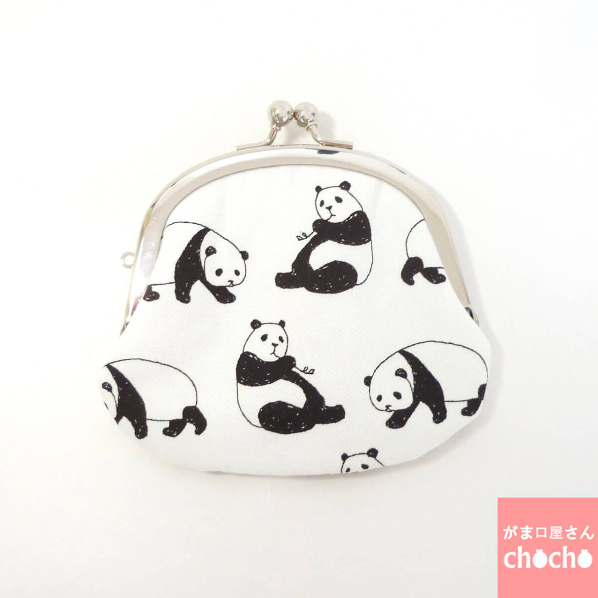 - がま口小銭入れ パンダ柄 白 コインケース ハンドメイド G614 3.3寸