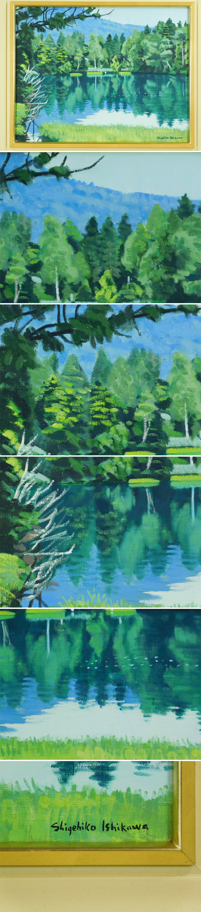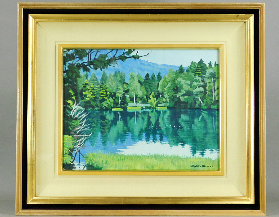 > 石川滋彦「山湖初夏」キャンバス 油彩 F6 額装 1971年作 日動画廊取扱 専用紙箱 新制作会会員 師 岡田三郎助 ka2509N06