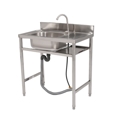 - 【幅80cm】屋外 流し台 ステンレス製 ガーデンシンク 作業台 キッチン 台所 屋外 簡易 シンク 組み立て簡単 収納棚付 【シルバー】