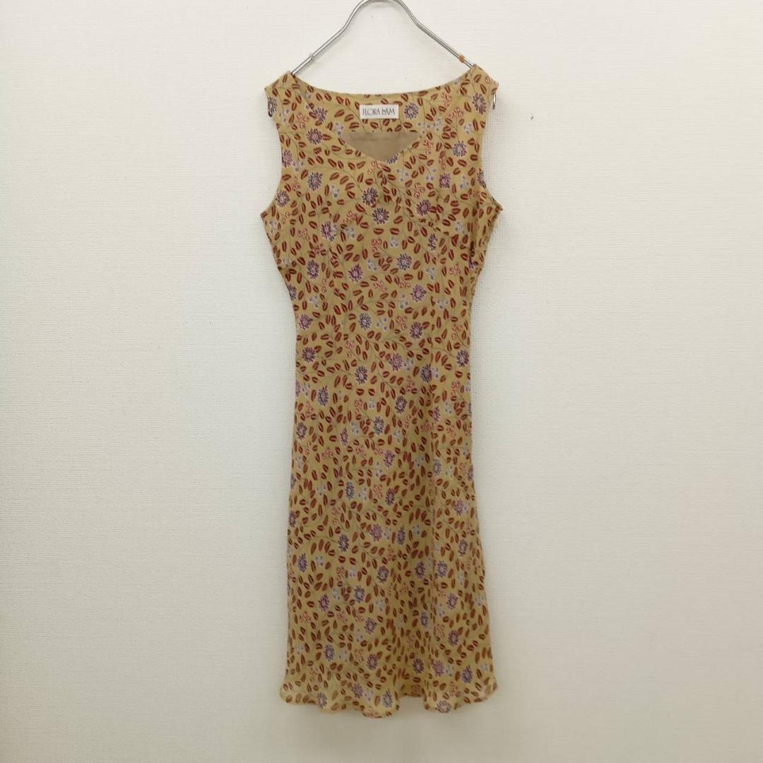 - 【美品】FLORA LAM(1)ひざ丈フレアワンピース*花柄総柄*ノースリーブ