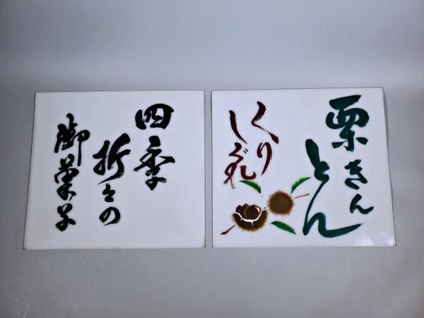 - 和菓子屋 直筆 看板 2枚セット アクリルパネル 四季折々の御菓子 栗きんとん くりしぐれ 410mm × 370mm × 2mm 店舗 店頭 ②